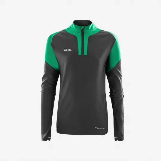 Bluza cu fermoar scurt Fotbal VIRALTO CLUB Verde-Gri Copii, 5-6 Ani