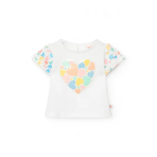 boboli, Tricou cu aplicatii cu paiete, Alb, Verde, Roz, 104 CM
