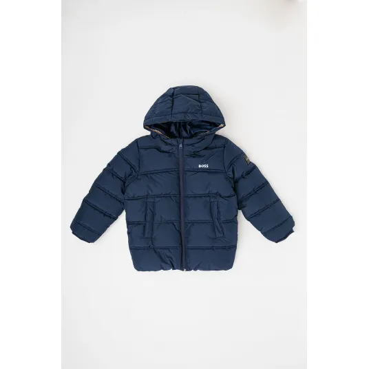 BOSS Kidswear, Geaca matlasata cu gluga, Albastru marin, 150 CM