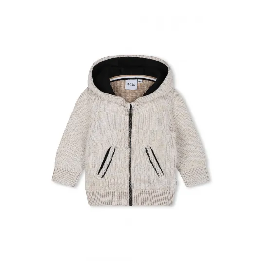 BOSS Kidswear, Pulover cu gluga si fermoar, Maro taupe deschis, 81 CMBOSS Kidswear, Pulover cu gluga si fermoar, Maro taupe deschis, 81 CM223637032223637032