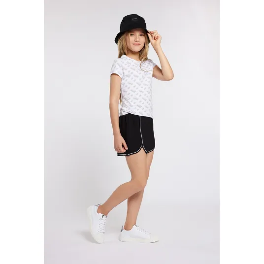BOSS Kidswear, Tricou cu imprimeu grafic, Alb, Maro taupe, 114 CM