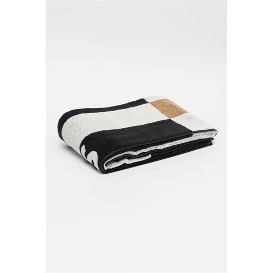 BOSS, Prosop de plaja cu model logo, Alb, Negru