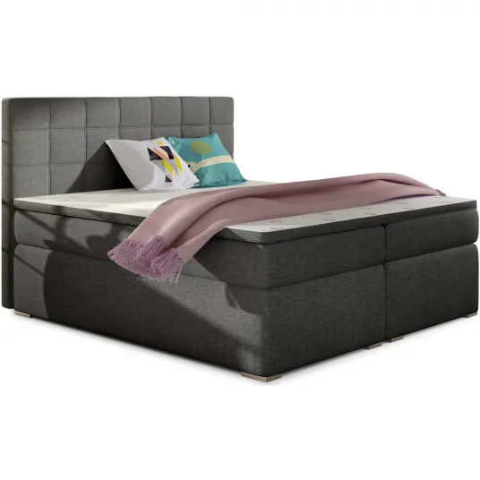Boxspring ELTAP Alice 2 locuri, gri inchis, 140x205x117 cm, cu 2 cutii de depozitare BA01_1.4