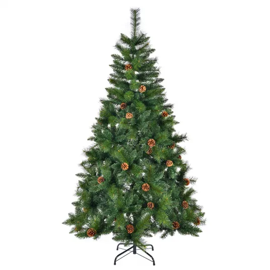 Brad artificial Kring Praga, PVC, cu conuri, 210 cm, 1048 crengute, Verde