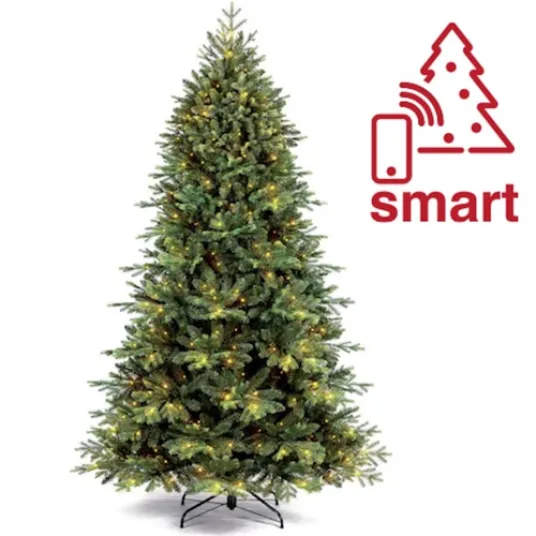 Brad artificial premium Kring Michigan, 200 LED-uri cu lumina calda, adaptor smart/control prin telefon, 180 cm, ace 3D, PE/PVC, Verde