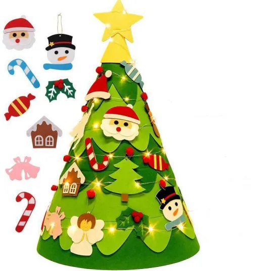 Brad de Craciun din Fetru in 2 culori, model Conic 3D, 75x48 cm, 27 decoratiuni si banda LED inclusaBrad de Craciun din Fetru in 2 culori, model Conic 3D, 75x48 cm, 27 decoratiuni si banda LED inclusa223186522223186522