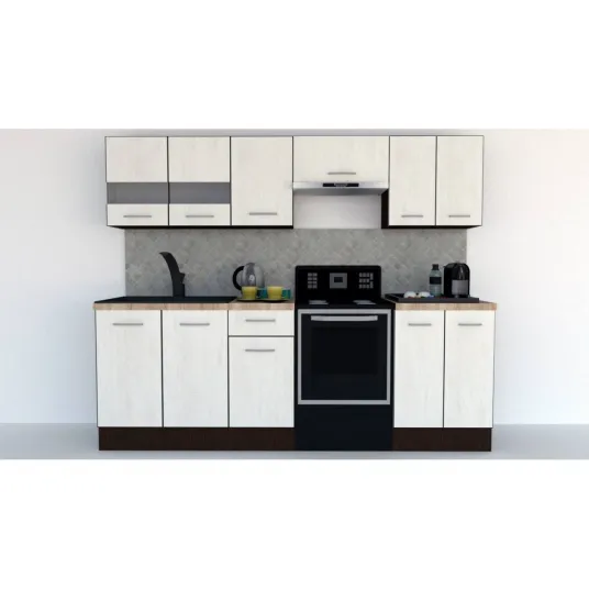 De ce sa alegi acest produs ?Setul de bucatarie MARINA B se recomanda prin raportul pret calitate in favoarea clientului. Setul are lungimea de 240 cm si cuprinde 7 module care pot fi dispuse independent.