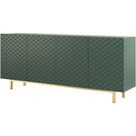 Bufetul Woodmood Scalia II, 190x42x81 cm, 4 usi, culoare verde/auriu a fost proiectat atent pentru a depozita cat mai multe obiecte. Patru dulapuri incapatoare cu polite si fronturi canelate ofera spatiu generos cat sa puteti pastra ordinea in locuinta.
