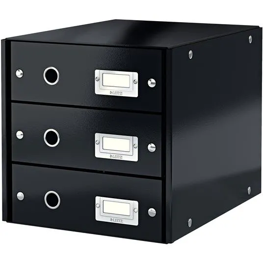 Cabinet cu sertare Leitz WOW Click Store, 3 sertare, carton laminat, partial reciclat, A4, negru