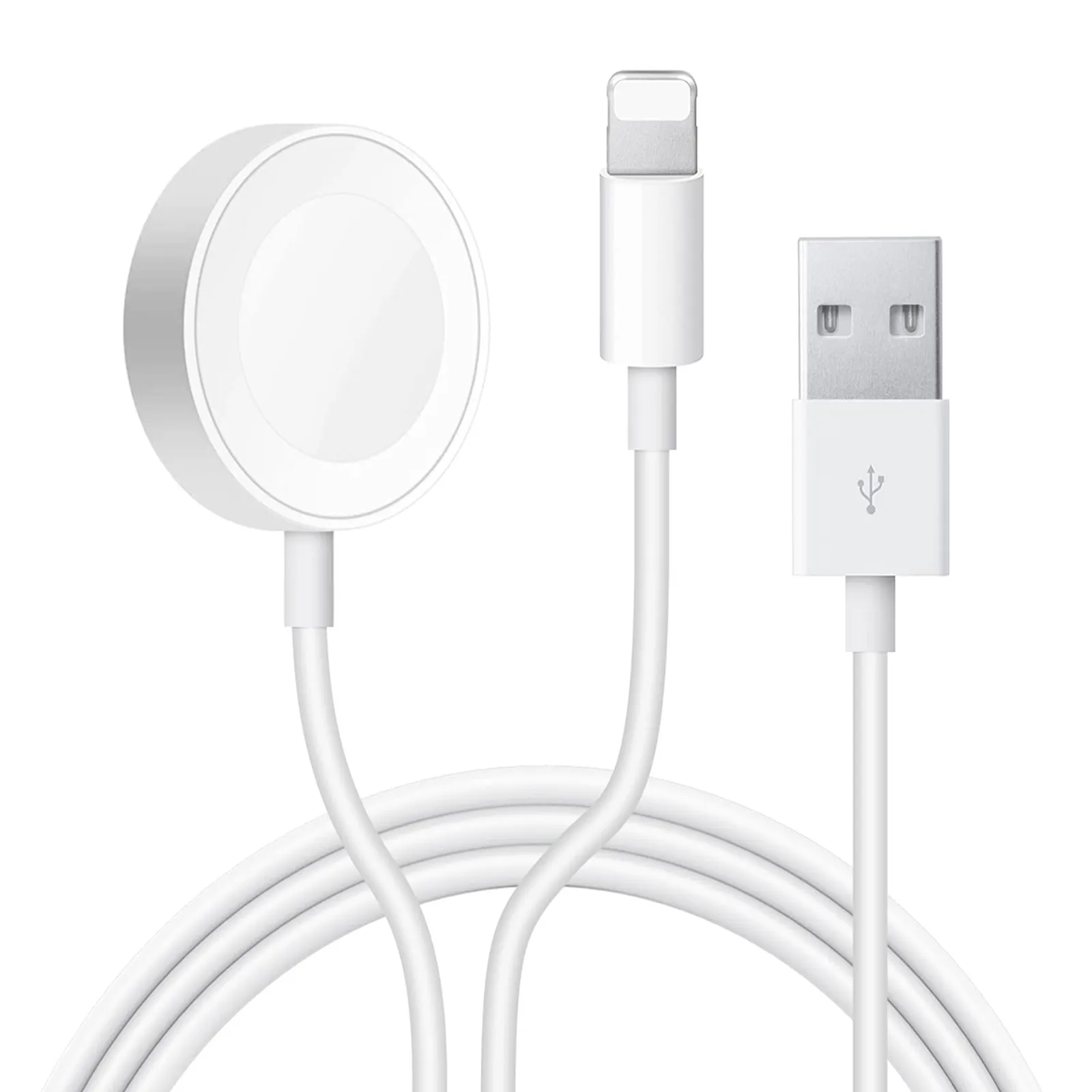 Cablu de incarcare, zggzerg, cu mufa de calatorie USB de perete, Incarcator portabil pentru telefon si ceas 2 in 1, Compatibil cu iWatch seria SE/8/7/6/5/4/3/2/1 si telefoane mobile Apple, 1m, Alb