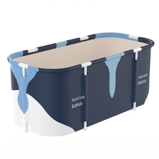 Cada pliabila portabila, Rqiurpn, 6 straturi grosime, potrivita pentru efecte terapeutice cu apa calda si rece, potrivita pentru copii/adulti, Cu accesorii, lungime 120 cm, Albastru/Alb