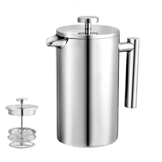 Cafetiera cu presa franceza, XGETOP®, Capacitate 1000ml, din otel inoxidabil, cu lingura de masurare, Argintiu