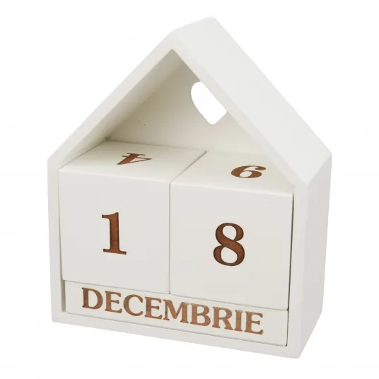 Calendar Vesnic, BraysDecor, 23x18x9 cm, Gravura pe Lemn, MDF, Alb
