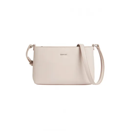 CALVIN KLEIN, Geanta crossbody de piele ecologica cu logo metalic discret, Crem