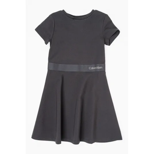 CALVIN KLEIN, Rochie evazata cu logo, Negru, 170 CM