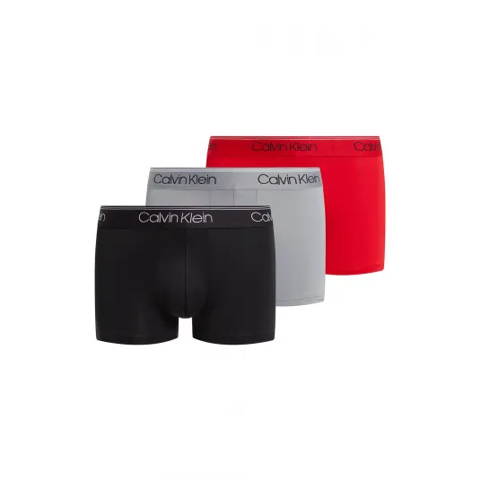 CALVIN KLEIN, Set de boxeri cu banda logo in talie - 3 perechi, Negru, Gri deschis, Rosu vermillion, XL