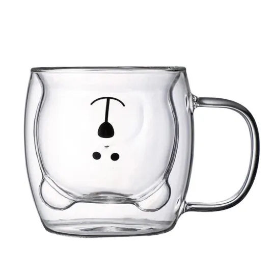 Cana cafea din sticla borosilicata, cu pereti dubli, model ursulet, 250 ml