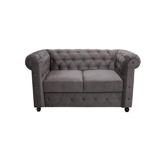 Canapea CHESTERFIELD fixa, 2 locuri, cu arcuri, gri, 168x90x80 cm