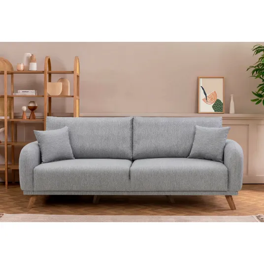 Tesatura din in 100% adauga o nota de rafinament spatiului dvs. de locuit, in timp ce culoarea gri completeaza orice decor interior. Picioarele din lemn, cu o inaltime de 16 cm, adauga o nota de eleganta si stabilitate la designul general. Aceasta canapea extensibila se integreaza fara efort in orice stil, fiind o alegere versatila pentru orice casa.