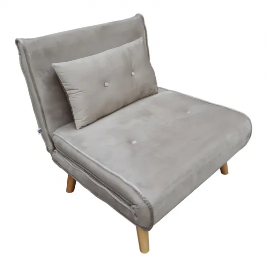 Canapea extensibila Josuane gri catifea cu picioare din lemn natural 77x80x81 cm