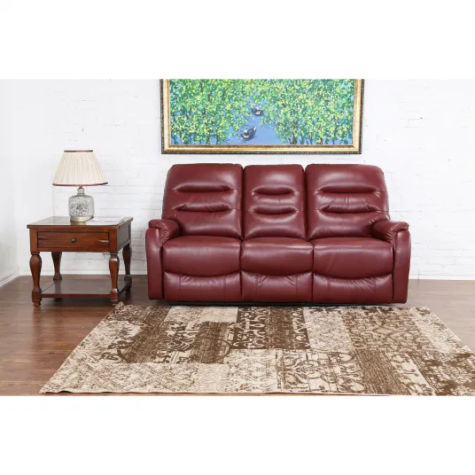 Canapea Kring Sylvie Air, piele ecologica air, cu 3 locuri, 2 reclinere si 3 trepte de confort, Maro roscat, 193 x 100 x 101 cm