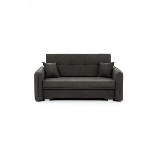 Design excelent, model bine gandit si aspect minimalist - acesta este American Laine. Aceasta piesa de mobilier este extrem de confortabila, datorita umpluturii sub forma de arc Bonnell si spuma T25. In plus, cutia Nuastra de lenjerie de pat americana este echipata cu un recipient pentru lenjerie de pat, deci este un loc minunat pentru a ascunde perne sau paturi suplimentare. Picioarele Laine sunt fabricate din plastic, iar inaltimea lor este de numai 3 centimetri. Masurand 155x105x75 cm, aceasta canapea extensibila americana aduce stil elegant si functionalitate in camera de zi, dormitor sau biroul de acasa. Laine poate fi transformat rapid intr-un pat de dormit cu dimensiunile de 196x125 cm. Este cu siguranta o optiune ideala pentru proiectiile de filme de seara. Partea vizuala a American Laine se datoreaza decoratiunilor interesante sub forma de matlasare pe spatele mobilierului. In plus, setul cu mobilier include doua perne decorative in aceeasi culoare ca perna americana. Laine este o optiune ideala pentru fanii solutiilor minimaliste si naturale in designul interior.