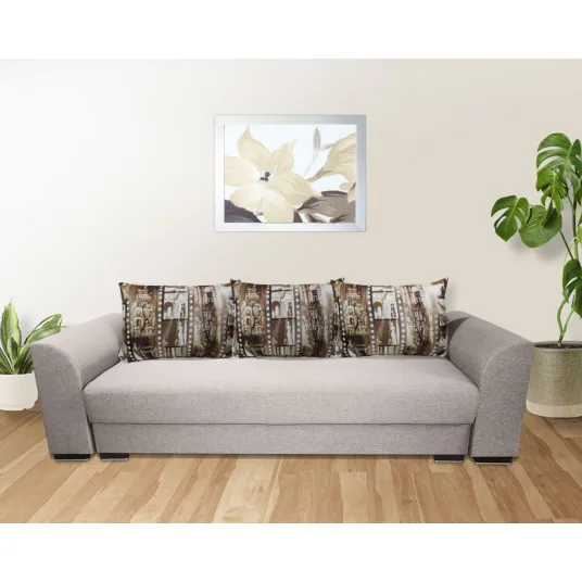 Canapeaua Lindo are saltele cu plasa de arcuri (tip Relaxa) si burete de densitate mare pentru o rezistenta sporita in timp, iar datorita suprafetei plane care se formeaza atunci cand se extinde asigura un somn odihnitor pe timpul noptii. Atat canapeaua cat si pernele sunt tapitate cu stofa.