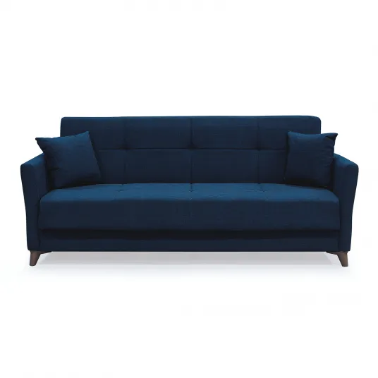 Canapea LOREN extensibila, 3 locuri, cu arcuri si lada depozitare, albastru, 203x85x85 cmSuprafata de dormit: , Lungime: 180 cm , Latime: 110 cm Dimensiuni canapea (gabarit): , Lungime: 203 cm , Adancime totala: 85 cm , Adancime sezut: 55 cm , Inaltime totala: 85 cm , Inaltime sezut: 44 cm , Numar de locuri recomandat: 3 Materiale: , Lemn masiv , Elemente PAL si PFL , Sezut cu arcuri tip bonnel: grosime sarma 2.4 mm , Minet 150g m ² , Pasla 1200g m ² , Spuma poliuretanica (burete) , Material acoperire: Stofa , Accesorii PVC Avantajele produsului: , Perne decorative incluse , Sistem de extindere click-clack , Lada depozitare din PAL melaminat , Certificate: ISO 9001, 14001 Informatii suplimentare: , Numar colete: 1 , Origine: Turcia224184188224184188