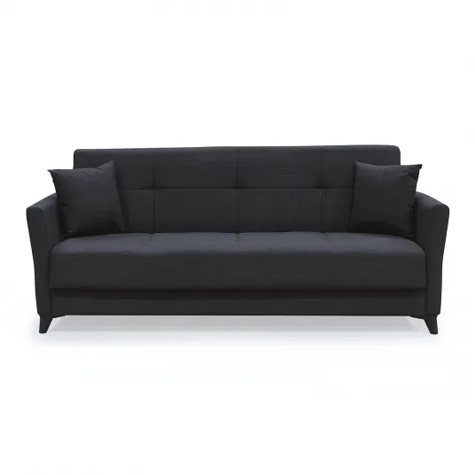 Canapea LOREN extensibila, 3 locuri, cu arcuri si lada depozitare, gri inchis, 203x85x85 cmSuprafata de dormit: , Lungime: 180 cm , Latime: 110 cm Dimensiuni canapea (gabarit): , Lungime: 203 cm , Adancime totala: 85 cm , Adancime sezut: 55 cm , Inaltime totala: 85 cm , Inaltime sezut: 44 cm , Numar de locuri recomandat: 3 Materiale: , Lemn masiv , Elemente PAL si PFL , Sezut cu arcuri tip bonnel: grosime sarma 2.4 mm , Minet 150g m ² , Pasla 1200g m ² , Spuma poliuretanica (burete) , Material acoperire: Stofa , Accesorii PVC Avantajele produsului: , Perne decorative incluse , Sistem de extindere click-clack , Lada depozitare din PAL melaminat , Certificate: ISO 9001, 14001 Informatii suplimentare: , Numar colete: 1 , Origine: Turcia224184187224184187