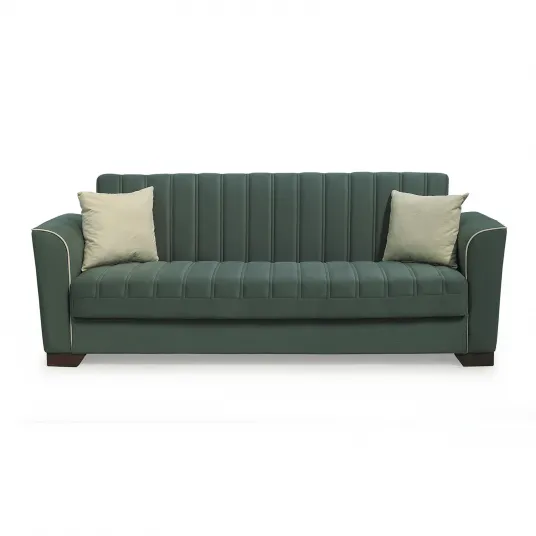 Canapea QUEEN extensibila, 3 locuri, cu arcuri si lada depozitare, verde, 218x70x80 cm