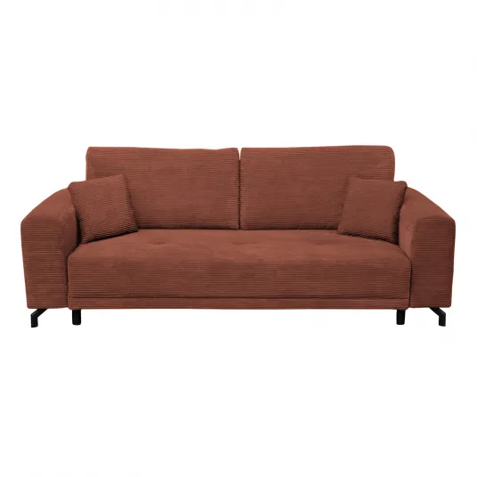 Canapea VEGA extensibila, 3 locuri, cu arcuri si lada depozitare, caramiziu, 240x111x72 cmSuprafata de dormit: , Lungime: 190 cm , Latime: 155 cm Dimensiuni canapea (gabarit): , Lungime: 240 cm , Adancime totala: 111 cm , Inaltime totala: 72 cm , Inaltime sezut: 44 cm , Numar de locuri recomandat: 3 Materiale: , Lemn masiv , Elemente PAL si PFL , Sezut cu arcuri tip bonnel: grosime sarma 2.4 mm , Minet 150g m ² , Pasla 1200g m ² , Spuma poliuretanica (burete) , Material acoperire: Stofa , Material picioare: Metal PVC , Accesorii PVC Avantajele produsului: , Perne decorative incluse , Sistem de extindere , Lada depozitare , Certificate: ISO 9001, 14001 Informatii suplimentare: , Numar colete: 2 , Greutate: 46 kg , Origine: Romania224184234224184234