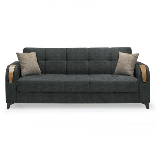 Canapea ZETA extensibila, 3 locuri, cu arcuri si lada depozitare, gri inchis + maro, 225x84x85 cmSuprafata de dormit: , Lungime: 190 cm , Latime: 110 cm Dimensiuni canapea (gabarit): , Lungime: 225 cm , Adancime totala: 84 cm , Inaltime totala: 85 cm , Inaltime sezut: 47 cm Materiale: , Stofa , PAL , MDF , Metal , Cherestea lemn Avantajele produsului: , Numar de locuri: 3 , Arcuri , Extensibila , Lada depozitare din PAL , Design elegant , Picioare din PVC , Perne decorative incluse Informatii suplimentare: , Numar colete: 1 , Origine: Produs in Turcia Vezi Instructiuni de Utilizare224184190224184190