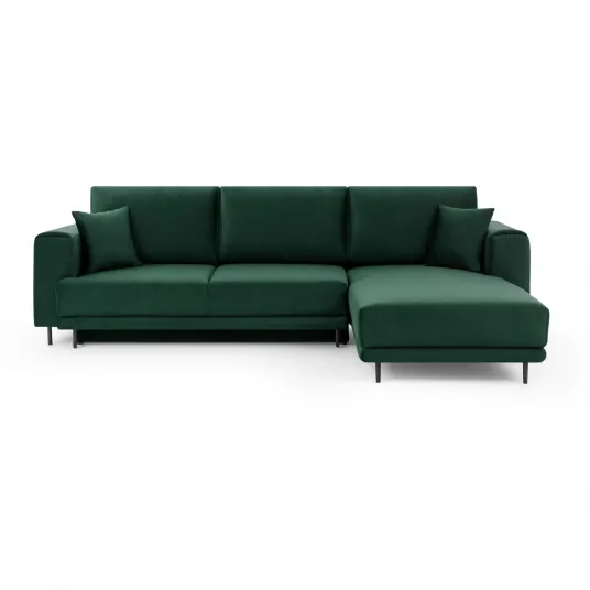 Canapea/Coltar extensibila ELTAP Dalia 4 locuri, dreapta, verde inchis, 289x190x73/95 cm, cu cutie de depozitare CO-DAL-RT-35LO