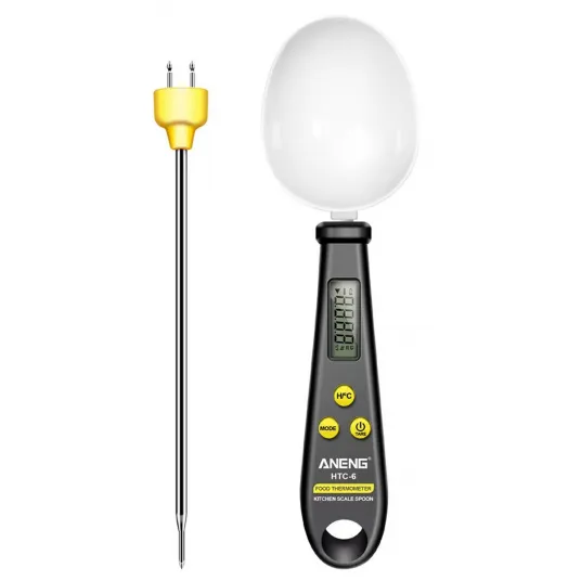 Cantar de bucatarie electronic 2 in 1 sub forma de lingurita cu termometru alimentar integrat, Afisaj LCD, Baterii inclus, Negru