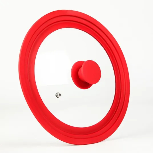 Capac universal rotund pentru vase de gatit, silicon si sticla temperata, rosu, 22/24/26 cm