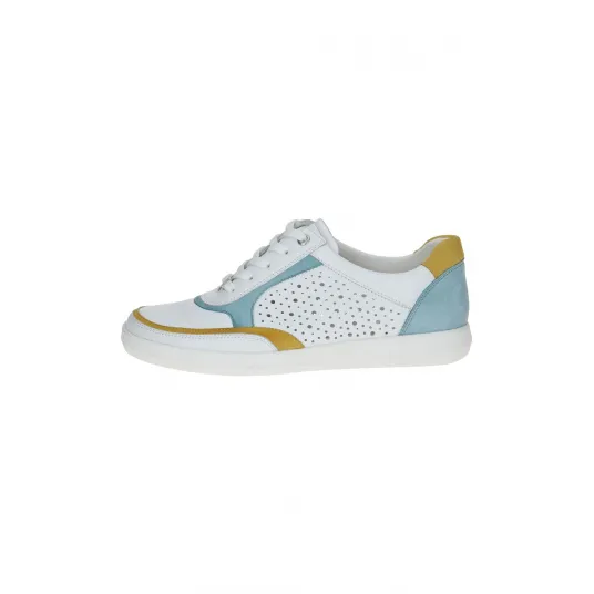 Caprice, Pantofi sport de piele cu segmente perforate, Alb, Albastru, Mustar, 37.5Caprice, Pantofi sport de piele cu segmente perforate, Alb, Albastru, Mustar, 37.5223707980223707980