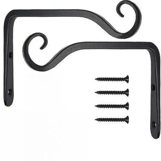 Carlig de perete metalic 2 piese, suport pentru cos pentru alimentatoare de pasari/plante/felinare/clopotei de vant (cu suruburi), Negru