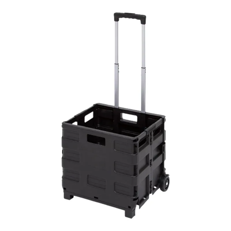 Carucior de cumparaturi, Vaxiuja, Doua roti, Pliabil, Capacitate maxima de incarcare 30 kg, Maner anti-alunecare, Capacitate mare, 38/33/36cm, Material Plastic/Metal, Negru