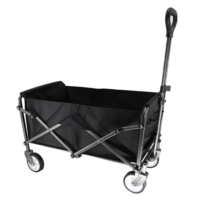 Carucior de mana de exterior pliabil, Vaxiuja, Capacitate maxima de Incarcare 50kg, Maner reglabil, Material Metal/Panza Oxford, Negru