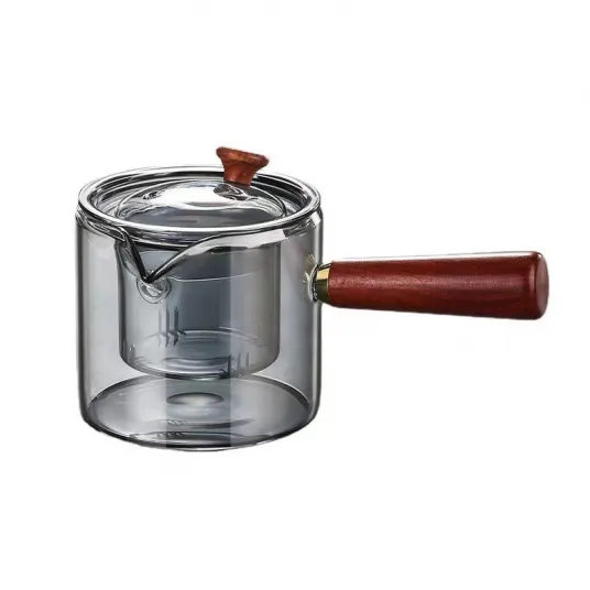 Ceainic din sticla borosilicata cu maner din lemn si infuzor, transparent, 550ml, 10x10cm