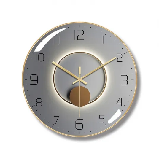 Ceas de perete, LEOKORВ®, Silentios, Suprafata curbata, Lumina si umbra, Capac de sticla,30x5 cm, Gri/Auriu