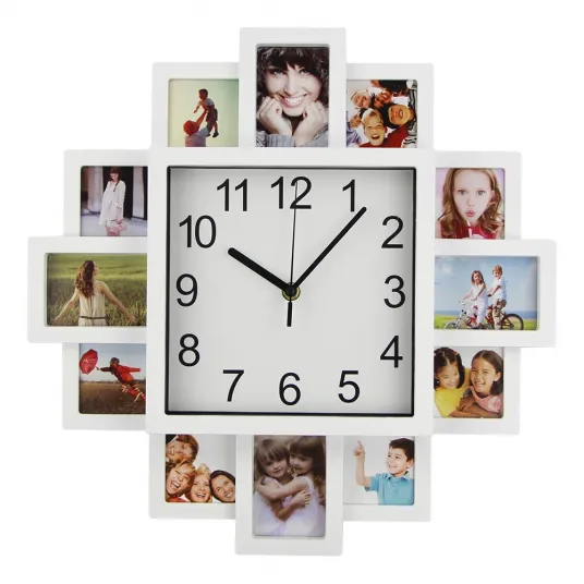 Ceas decorativ de perete cu Rama foto tip colaj, XinXu, 12 imagini, 38.5 x 38.5 cm, AlbCeas decorativ de perete cu Rama foto tip colaj, XinXu, 12 imagini, 38.5 x 38.5 cm, Alb701901930701901930