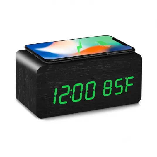 Ceas Digital de Masa cu Incarcare Wireless, Led Verde, Temperatura, Alarma, Comanda Vocala, 3 Trepte de Lumina, 170x81x71 mm, NegruCeas Digital de Masa cu Incarcare Wireless, Led Verde, Temperatura, Alarma, Comanda Vocala, 3 Trepte de Lumina, 170x81x71 mm, Negru702488536702488536