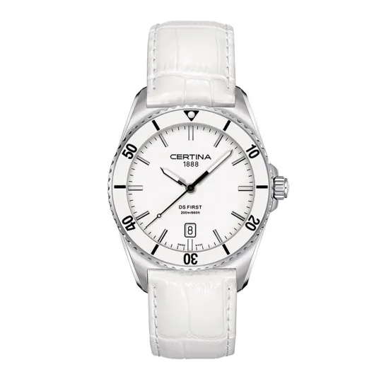 Certina, Ceas de otel inoxidabil cu o curea de piele, Alb prafuit