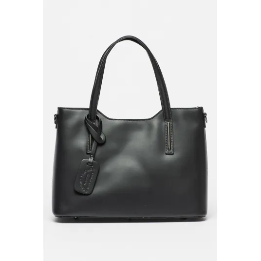 Chiara Canotti, Geanta de piele cu bareta de umar si buzunar exterior cu fermoar, Negru