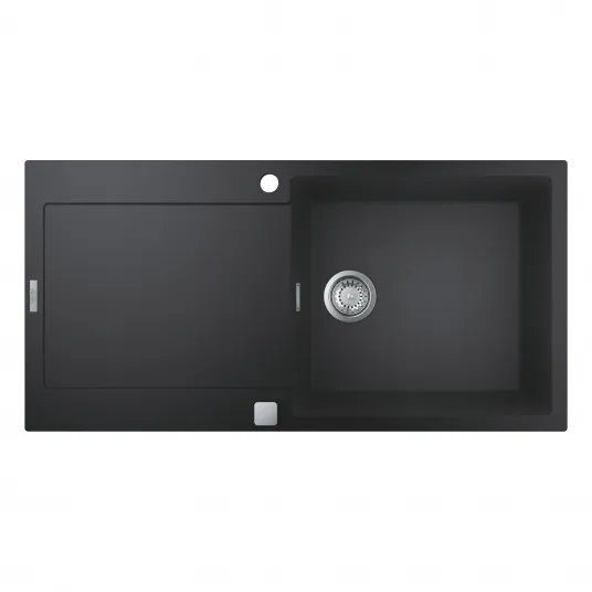 Chiuveta bucatarie compozit Grohe K500 31645AP0, 1000x500 mm, reversibil, montare pe blat, evacuare automata, Kit montaj si evacuare inclus, Negru granit