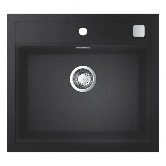 Chiuveta bucatarie compozit Grohe K700 31651AP0, 560x510 mm, montare pe blat, evacuare automata, Kit montaj si evacuare inclus, Negru granit