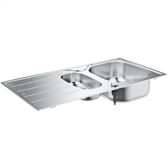 Chiuveta bucatarie Grohe K200 31564SD1, 970 x 500 mm, picurator, 2 cuve, reversibila, evacuare, inox satinat