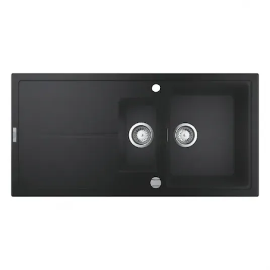 Chiuveta compozit Grohe K400 31642AP0, 1000x500 mm, reversibil, 2 boluri, montare pe blat, evacuare automata, Kit montaj si evacuare inclus, Negru granitChiuveta compozit Grohe K400 31642AP0, 1000x500 mm, reversibil, 2 boluri, montare pe blat, evacuare automata, Kit montaj si evacuare inclus, Negru granit