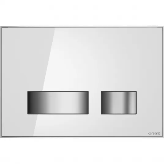 Clapeta actionare rezervor WC incastrat Cersanit Button ON Wall Level Movi II, montare la nivelul peretelui, pentru sistemele incastrate Aqua si System (K97-524; K97-526; K97-525), compatibil cu Fresh System, Sticla, White